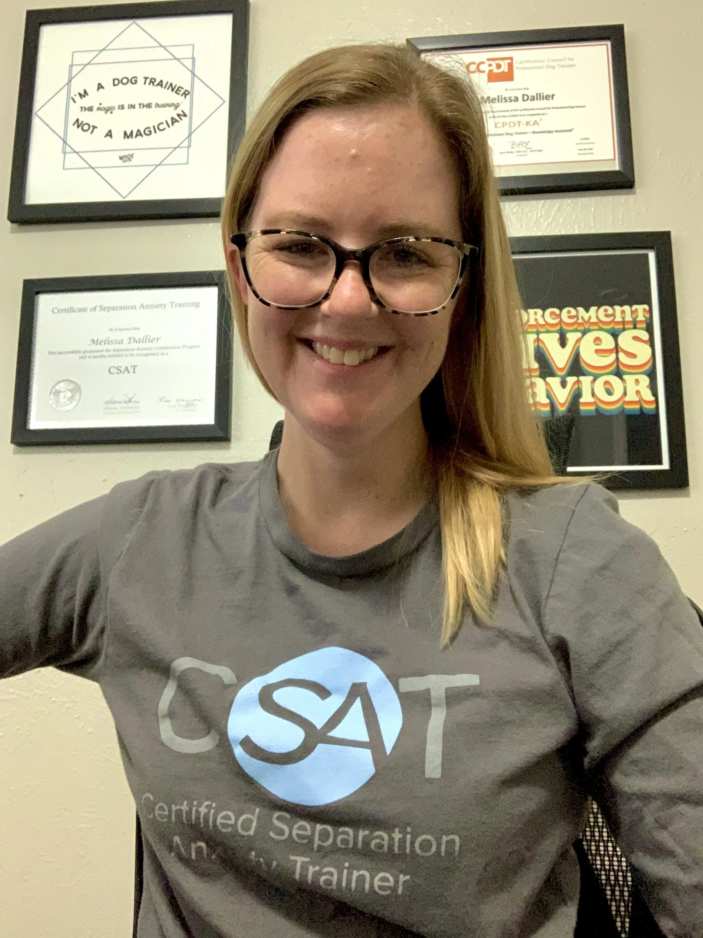 I'm Melissa Dallier, founder, owner and trainer and behavior coach at A Canine Affinity. My goal is to help you learn about and work to resolve separation anxiety related behaviors to ensure both you and your dog are able to enjoy time apart and together.